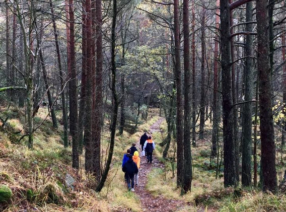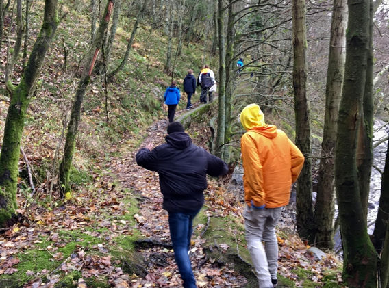Geopark Magma je za dijake in goste pripravil učno pot v Vannbassenganu na okoliških rekreacijskih površinah. V torek 29. januarja so se vsi udeleženci sestanka pridružili 20 dečkom iz srednje šole Husabø Ungdomsskole v gozdu. Razdelili so se v skupine, v vsaki pa so bili tako dijaki kot udeleženci sestanka. Z velikim nasmehom so si naložili aplikacijo in se odpravili reševat naloge. Gozdna tla je prekrivala čudovito sveža in debela snežna odeja. Čeprav je to pohodu dalo pridih vznemirljive eksotike, je obenem otežilo naloge, saj je kamne prekrival sneg.